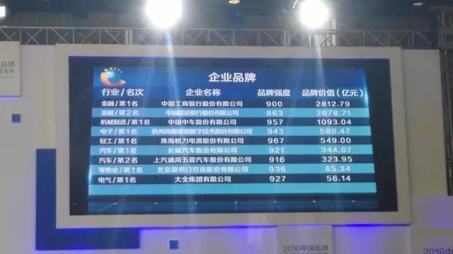 12月12日,在“2016年中國品牌價值評價信息發布會”上,中國中車以1093.71億元的品牌價值和957的品牌強度,高居機械類第一名。
