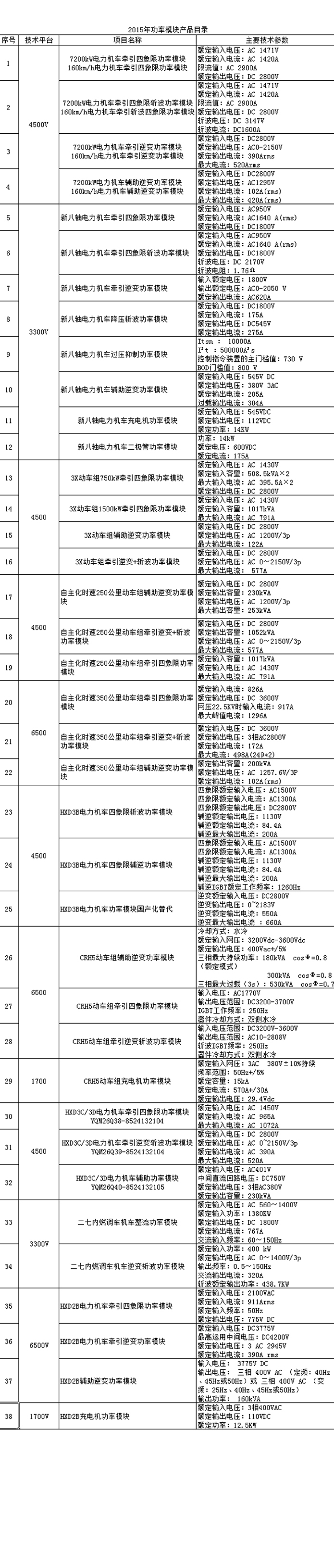 大功率機車變流功率模塊。配屬HXD2、HXD2B電力機車主/輔助變流柜。模塊采用先進的水冷、風冷散熱技術,模塊化設計,采用高壓IGBT開關器件,功率密度大,可靠性高,技術含量高。公司已經形成年產機車牽引/輔助功率模塊5000臺的能力。目前正在準備配套大同電力機車300列,需生產模塊7000多臺。